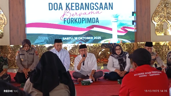 Derap.id || Banyumas – Forum Koordinasi Pimpinan Daerah (Forkopimda) Kabupaten Banyumas menggelar Doa Kebangsaan bersama tokoh dan pemuka agama lintas iman di Pendopo Sipanji Purwokerto, Sabtu siang (28/10/2025).