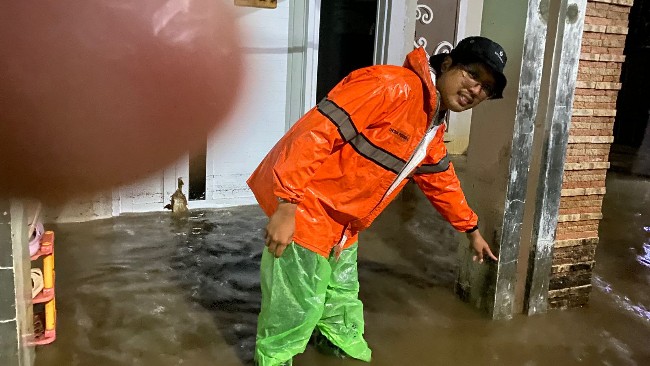 Air dari Sungai Njlengoh dan saluran drainase meluap hingga masuk ke rumah warga, dengan ketinggian genangan mencapai 40 cm.