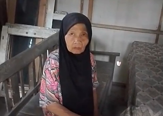 Nenek renta berusia sekitar 70 tahun ini tak pernah mengeluh, meski hidupnya jauh dari kata layak. Tinggal di rumah berdinding bambu, beratap genteng tua yang sebagian sudah miring, dan tanpa kamar mandi.